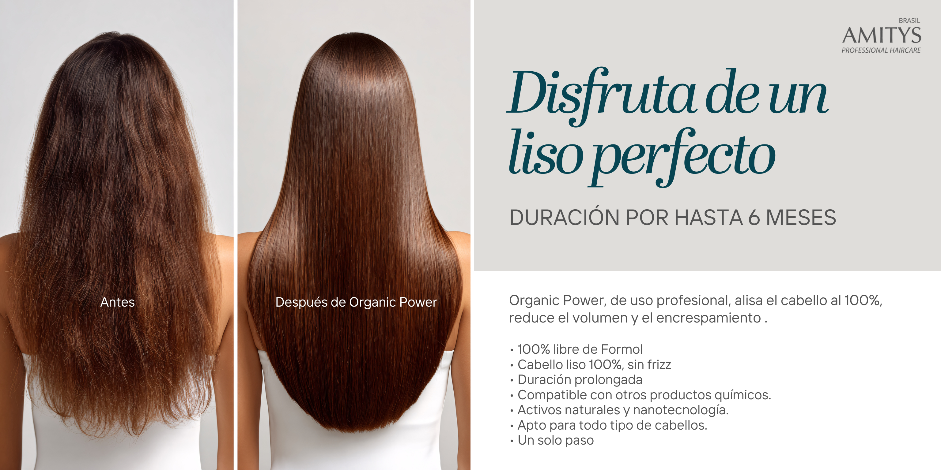 Organic Power, de uso profesional, alisa el cabello al 100%, reduce el volumen y el encrespamiento .